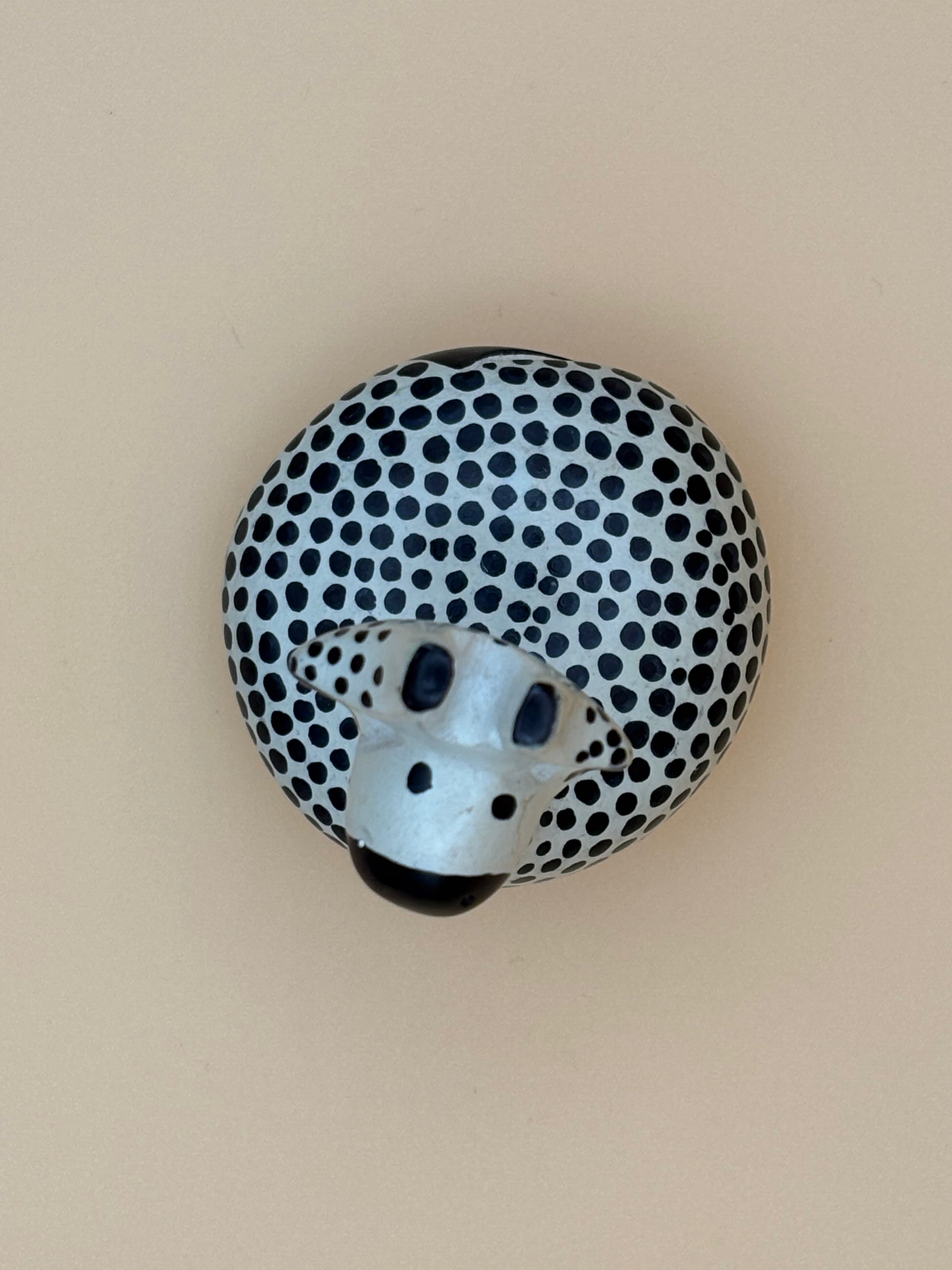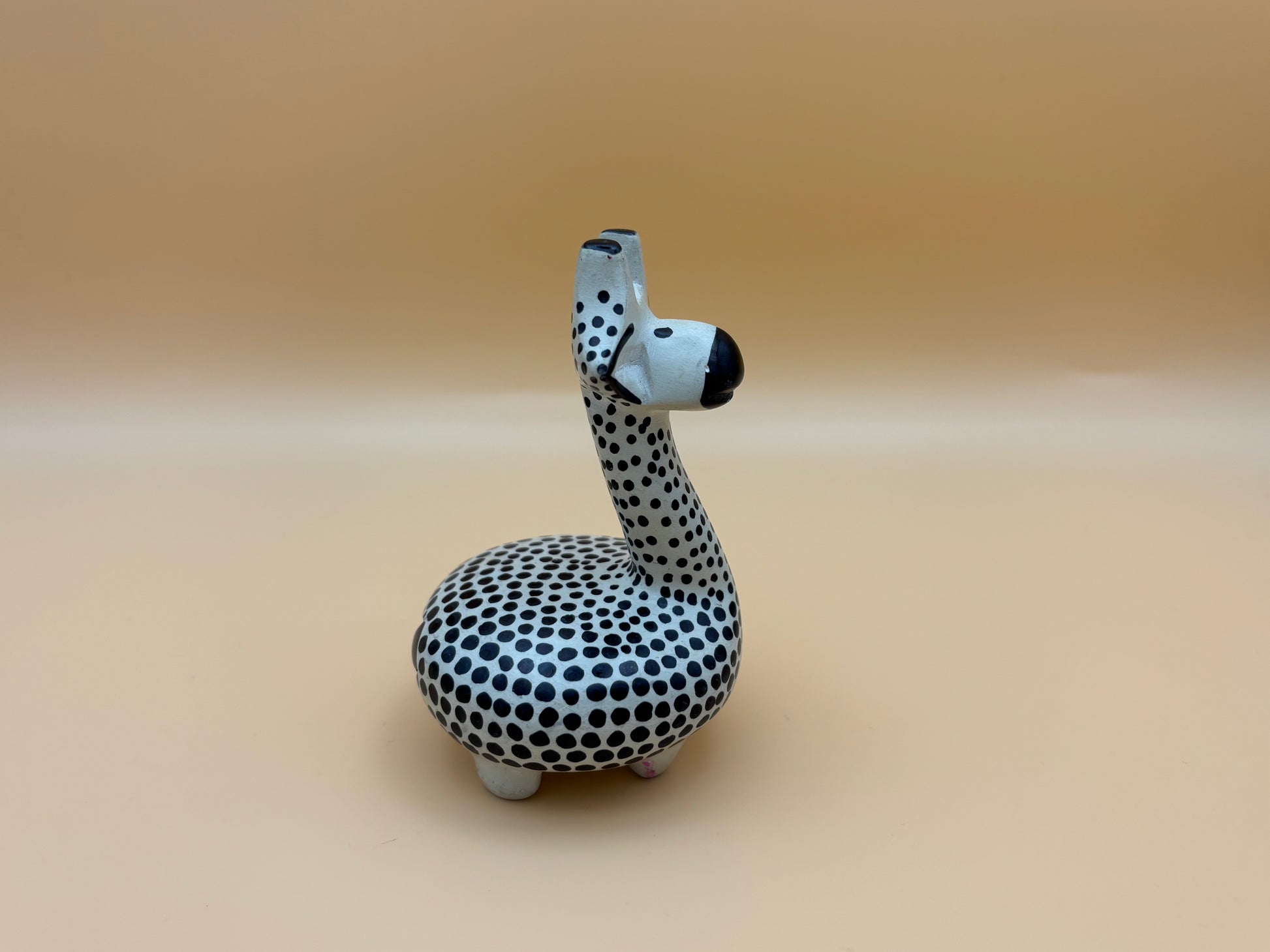 Bring a playful touch of Africa into your space with this hand-carved soapstone giraffe, decorated in a bold black-and-white polka dot pattern. Each piece is carefully shaped and smoothed from natural soapstone, then hand-painted by skilled artisans, making every giraffe unique.