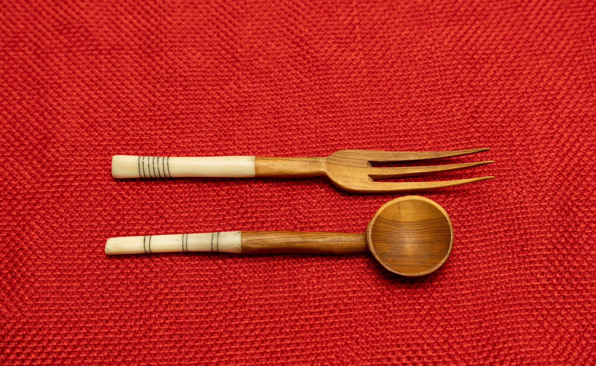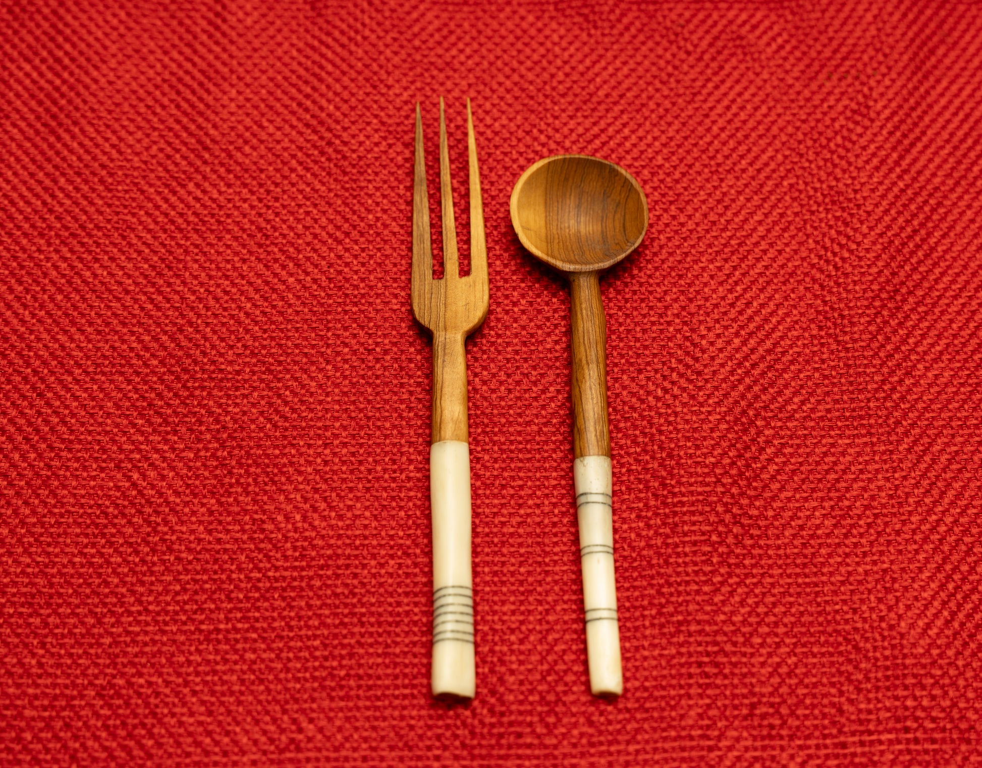 Medium Handcrafted Wooden Cutlery Set – Bone-Inlay Handles